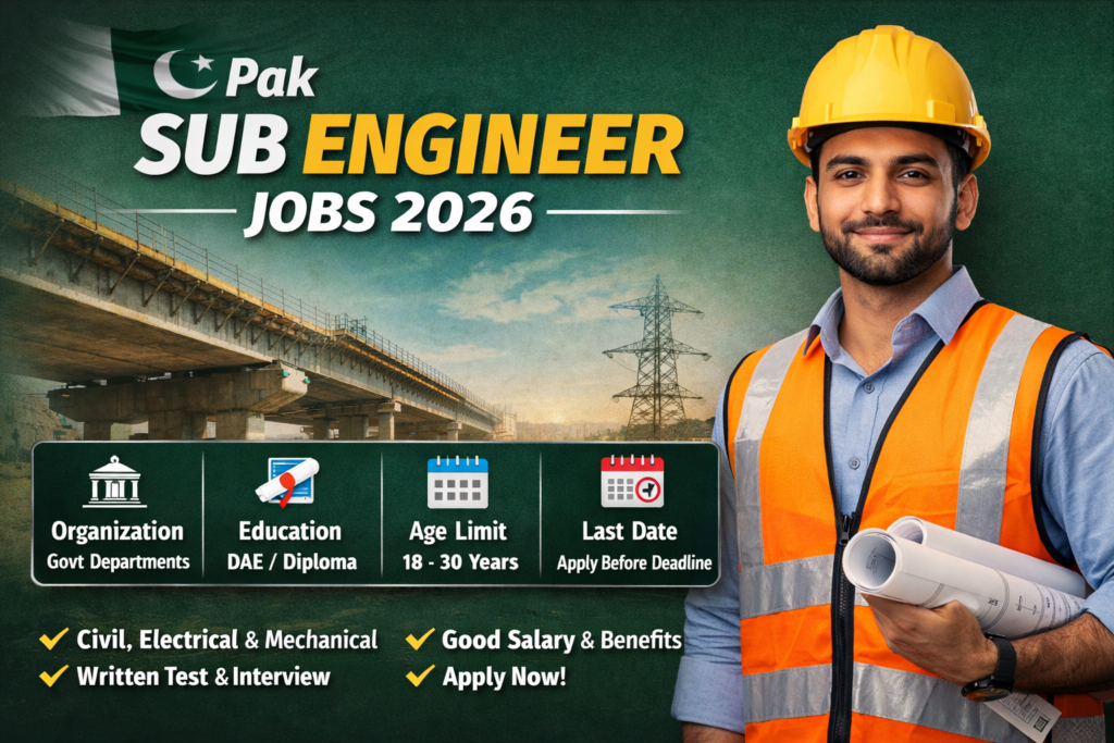 Pak Sub Engineer Jobs 2026 are a great career opportunity for Pakistani youth who have technical education and want a secure government job. These jobs are announced every year by different public sector departments and offer good salary packages, job stability, and long-term growth. If you have a diploma or relevant technical qualification, this is the right time to apply.